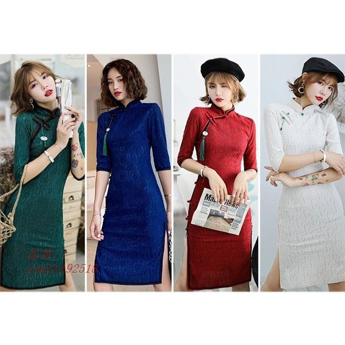 新到着 チーパオ ハイスリット ひざ丈 4五分袖 ワンピース チャイナドレス 原色チャイナ4色 ワンピース チュニック